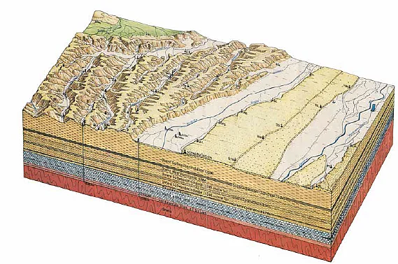 Vor 65 Millionen Jahren schob sich die kontinentale Platte von Afrika auf die von Europa. Die Erdkruste in der Aufprallzone wurde gefaltet wie die Kühlerhaube bei einem Autounfall. Berge und Täler entstanden, denn das Blech oder die Erdkruste mussten ja irgendwohin ausweichen.