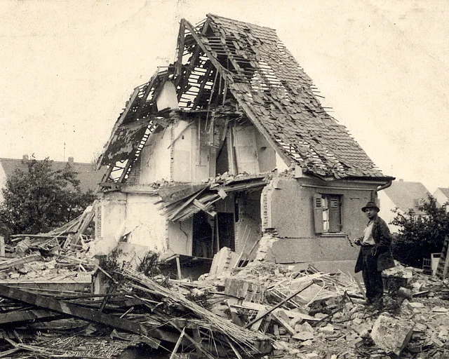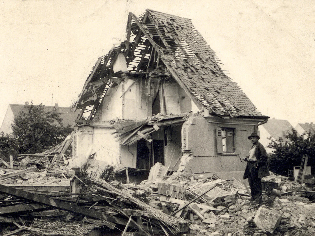 Heute bekam Königsbrunn zum ersten Mal den ganzen Ernst des Bombenkriegs zu fühlen. 18 Häuser wurden total zerstört. Bei Schwarzbeck Haus Nr. 3 wurden acht Personen, darunter auch zwei Schülerinnen, getötet. Drei Verschüttete konnten lebend geborgen werden.
