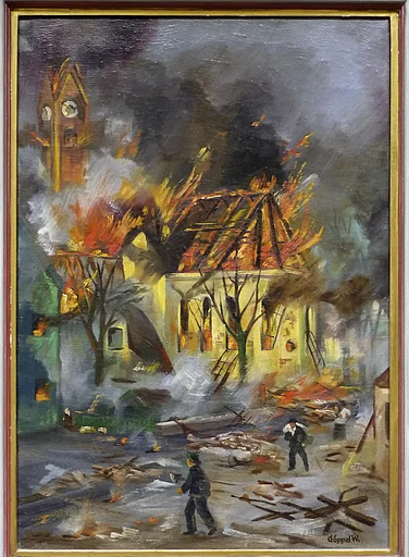 Doch die Soldaten waren aufgebracht und der Offizier, der kein Deutsch verstand, hatte das Funkgerät schon in der Hand, um die Bomber zu dirigieren. In diesem Augenblick kam der 25-jährige Alois Nolte zum Tor herein. Er hatte den Auftrag, einige Verwundete abzuholen, und – er konnte Französisch. Schnell erkannte er die Lage und bot an zu dolmetschen. Der Offizier erklärte ihm, dass das Kloster wegen der Verletzung des Kriegsrechts bombardiert würde. Außerdem vermutete er, dass sich die Nazis, die die Brücke gesprengt hatten, im Kloster versteckt hielten. Die Nonnen bestritten das heftig und berichteten, dass sie drei verwundete englische Piloten heimlich in ihrem Lazarett behandelten, von denen die Nazis nichts wissen durften. Der kanadische Offizier ließ sich sofort zu den Piloten führen und sah, dass die Holzener Nonnen ihnen das Leben gerettet hatten. Da griff er zu seinem Funkgerät und ließ die Bomber abziehen. So ist das prachtvolle Kloster im letzten Moment gerettet worden. Und die Nonnen waren sicher: Das Holzener Jesuskindlein hatte ihre Bitten erhört.